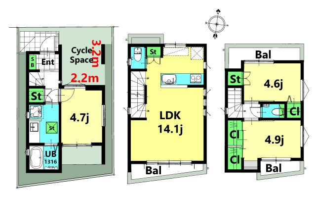 南向きのバルコニーの先は遊歩道つき石神井川に付き陽当り良好です。