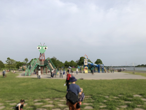 通称カマキリ公園と呼ばれるこの公園、私も一度遊びに行きましたが、かなり広い公園で台風当日はカマキリの頭部だけ残して水没したそうです。