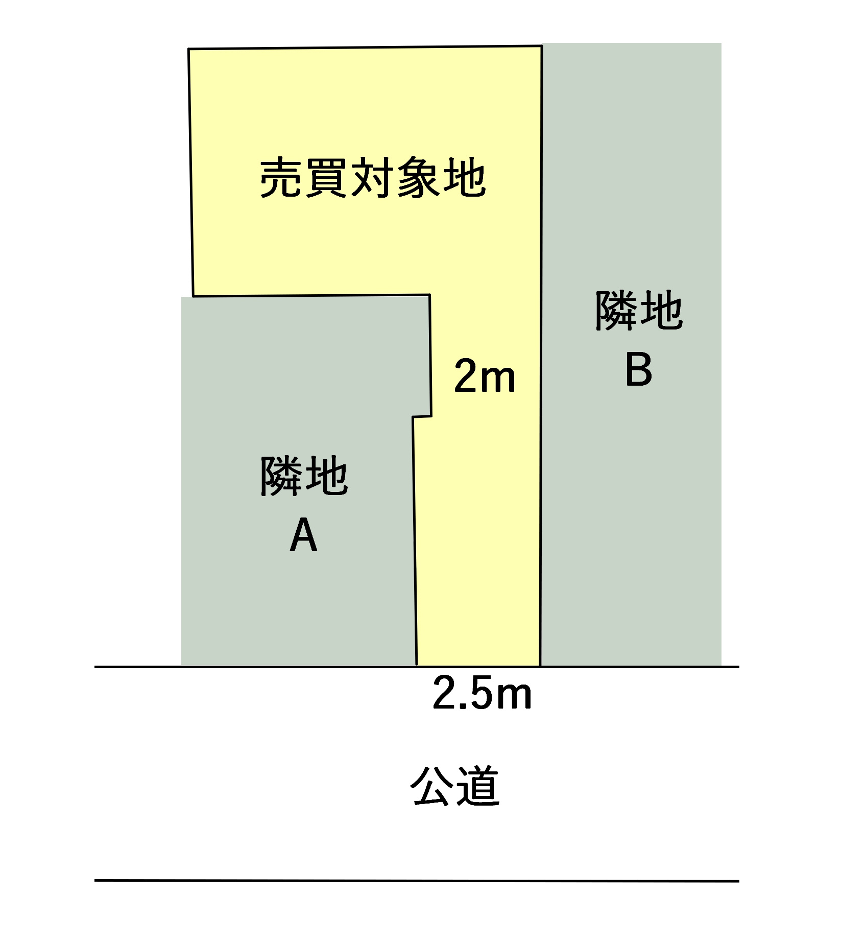 何が問題なのかというと、将来ご売却や建て替えなどを行う際に隣地Bとの境界を確定しなければならない場合、通路部分が2m確保出来ていないと再建築不可になってしまうからです。