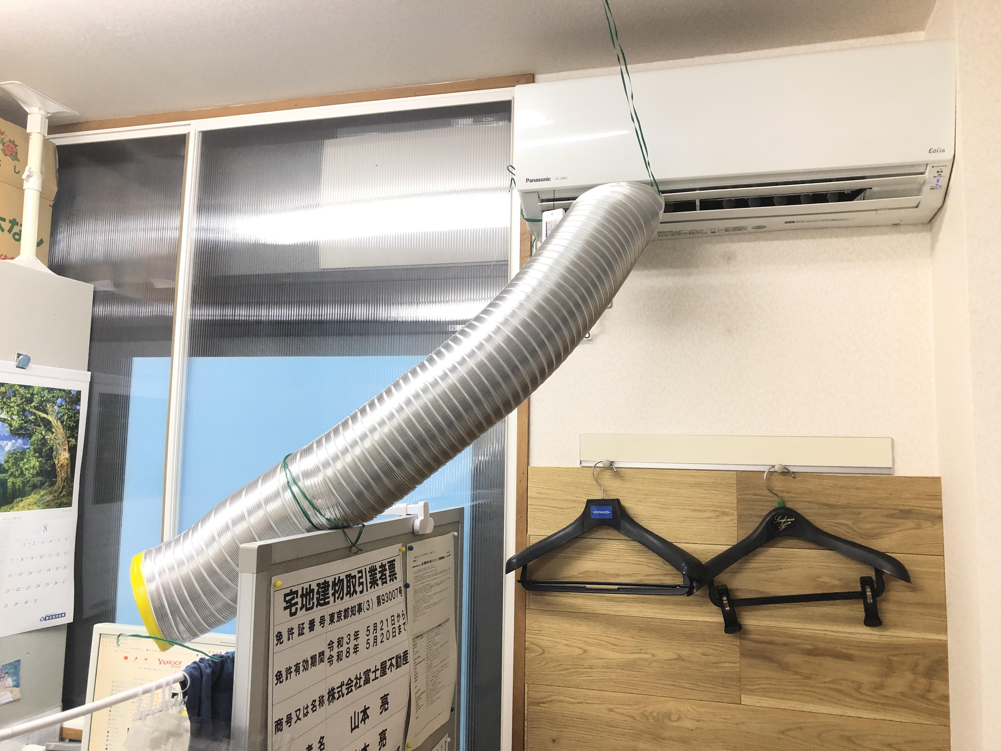 エアコン吹き出し口近くにダクトを吊るしただけですが、いい感じで冷風を浴びることができます♪ ご家庭内では暑がりなご主人、寒がりな奥様というケース、会社などでは外回りから戻ってきたばかりの営業スタッフと社内で作業を行っている経理スタッフとでは快適な温度設定が違うということ多いですよね。