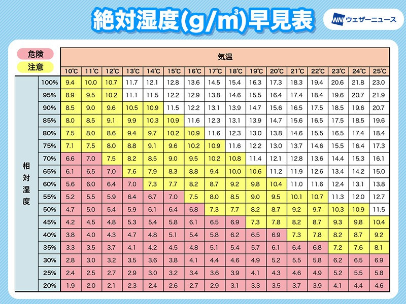 過去のコラムでもお伝えしましたが、湿度は絶対湿度をチェックした方がよいので気になる方は下記のコラムも併せてお読みください。