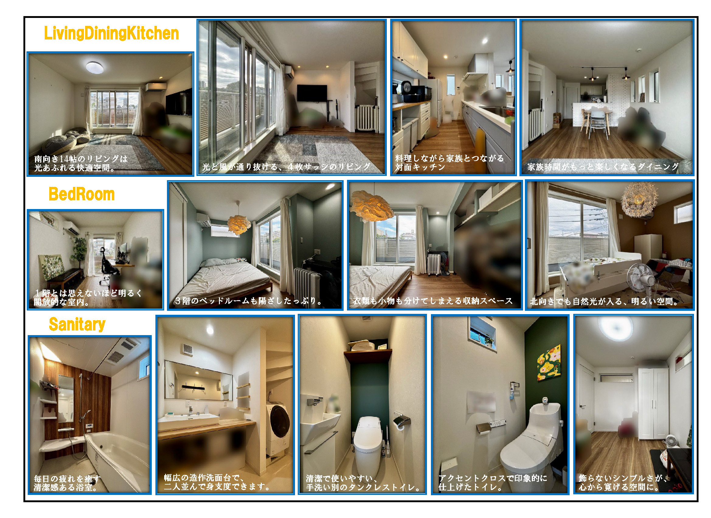 ・写真を豊富に掲載(外観・LDK・水回り・収納など)。
