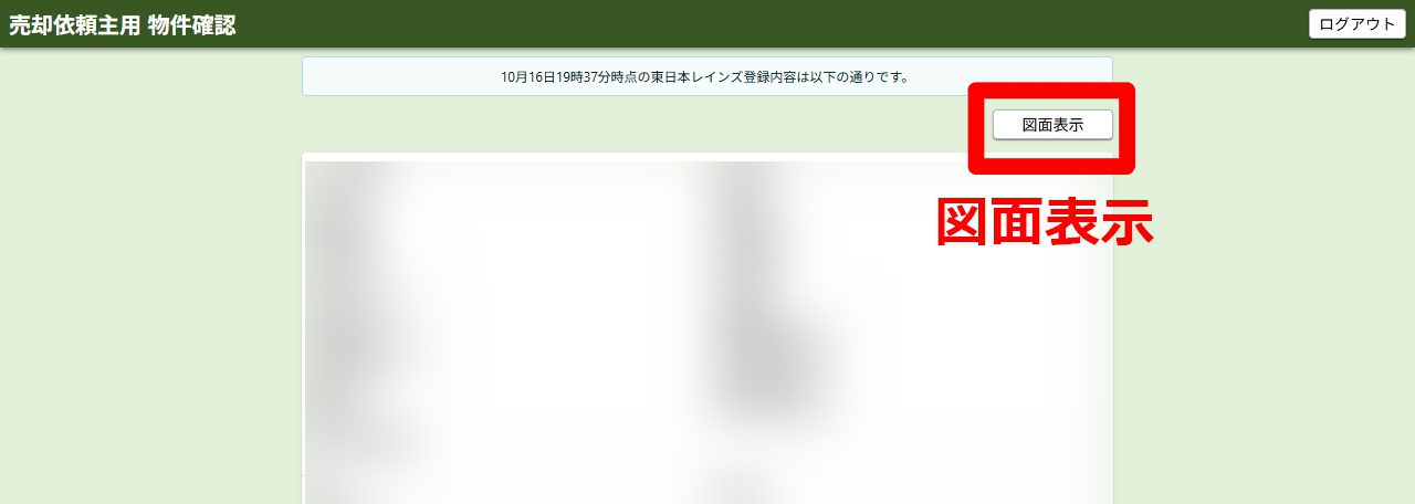 ログイン後、「図面表示」をクリックすると、レインズに登録されている販売チラシを閲覧できます。